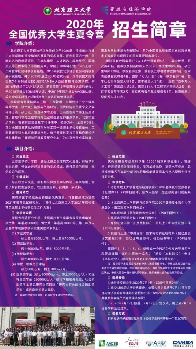 五大专业!北理工管理与经济学院夏令营招生简章