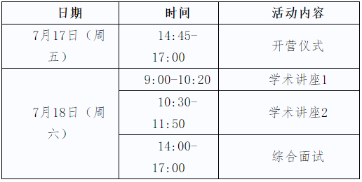 2.夏令营名额有限,机会宝贵,入营同学须全程参与活动,如不能参加请及时告知我院。