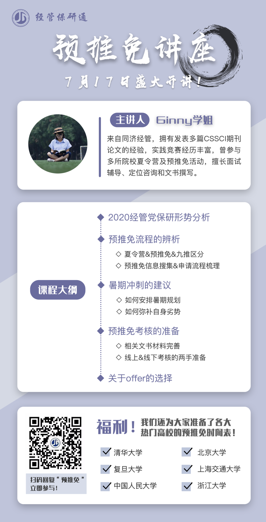 对外经贸大学政府管理学院2020年优秀大学生暑期夏令营活动通知:http://schpa.uibe.edu.cn/tzgg/90055.htm